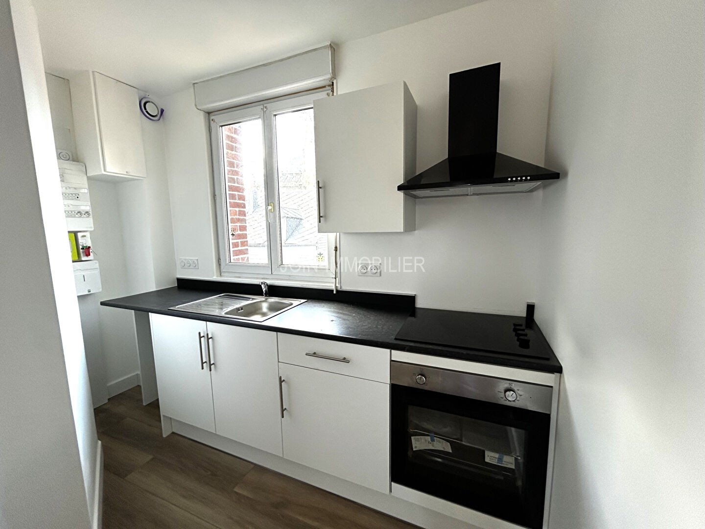 15 kms de Dieppe - envermeu - Centre bourg - Studio de 27.26 m² au 1er étage offrant : Entrée sur la pièce de vie avec cuisine ouverte aménagée et semi équipée (hotte, plaque, four), salle d'eau avec douche et WC.