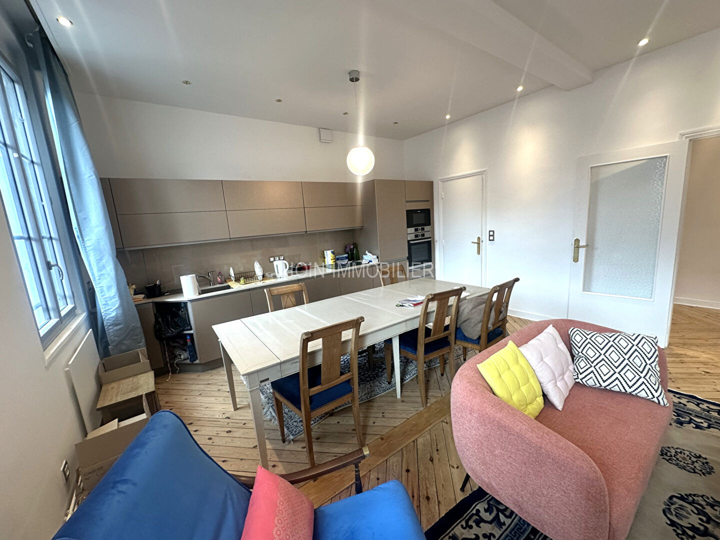 dieppe centre ville - 5 min à pied de la mer - à vendre bel appartement rénovée avec goût de type F4 de 103,02 m² (loi carrez) au 2ème étage d'une copropriété également rénovée comprenant : entrée avec placards, dégagement, séjour avec cuisine ouverte aménagée et équipée, 3 chambres dont une suite parentale avec baignoire, couloir, 2 salles de bains avec douche et 2 WC.