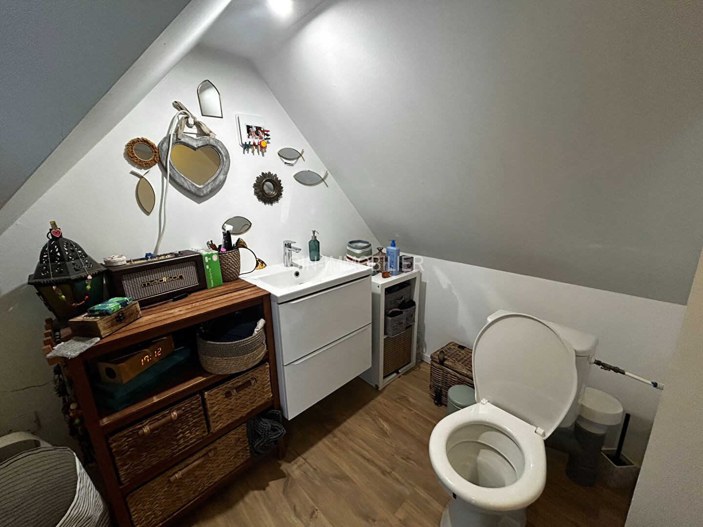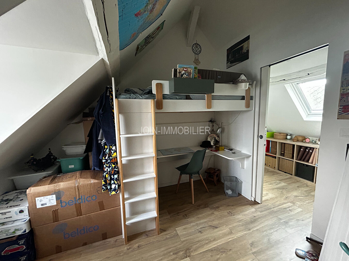 Au dessus : Grand palier à usage de bureau ou de chambre d'appoint, deux chambres, salle de bains avec WC.
