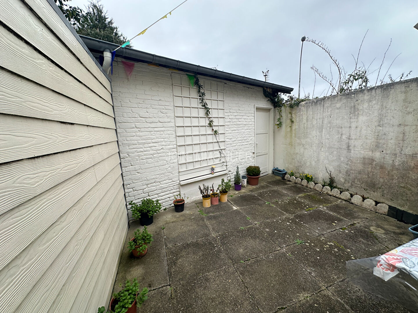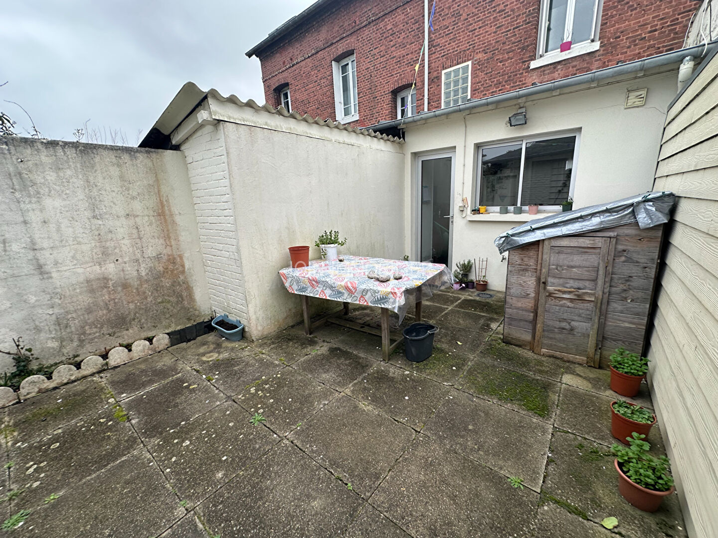 Cour intérieure avec petit bâtiment.